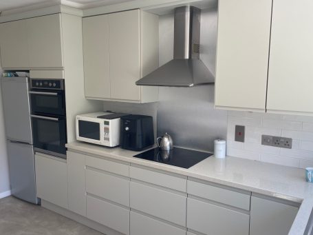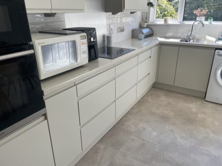 The clients had already had new worktops fitted so it was all about finding a door to match. The J Profile handleless door in matte cashmere proved to be the perfect choice.