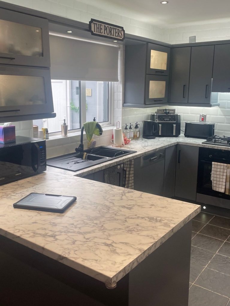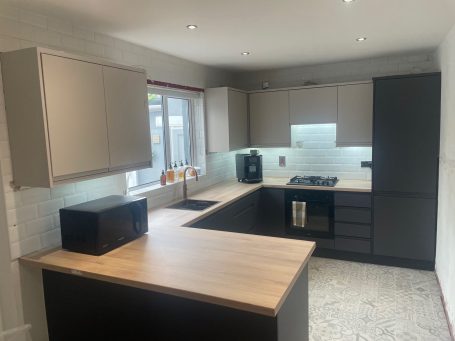 This kitchen needed a new set of soft close drawers along with a replacement sink base unit as it had suffered significant water damaged over the years. The worktops sink and tap were also replaced.